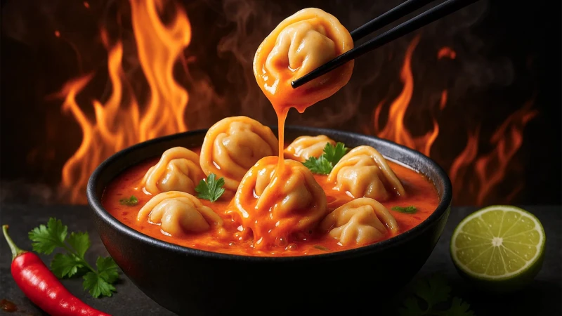 Пельмени, основа том ям, сливочный соус, перец, чеснок, кинза, шампиньоны, черри